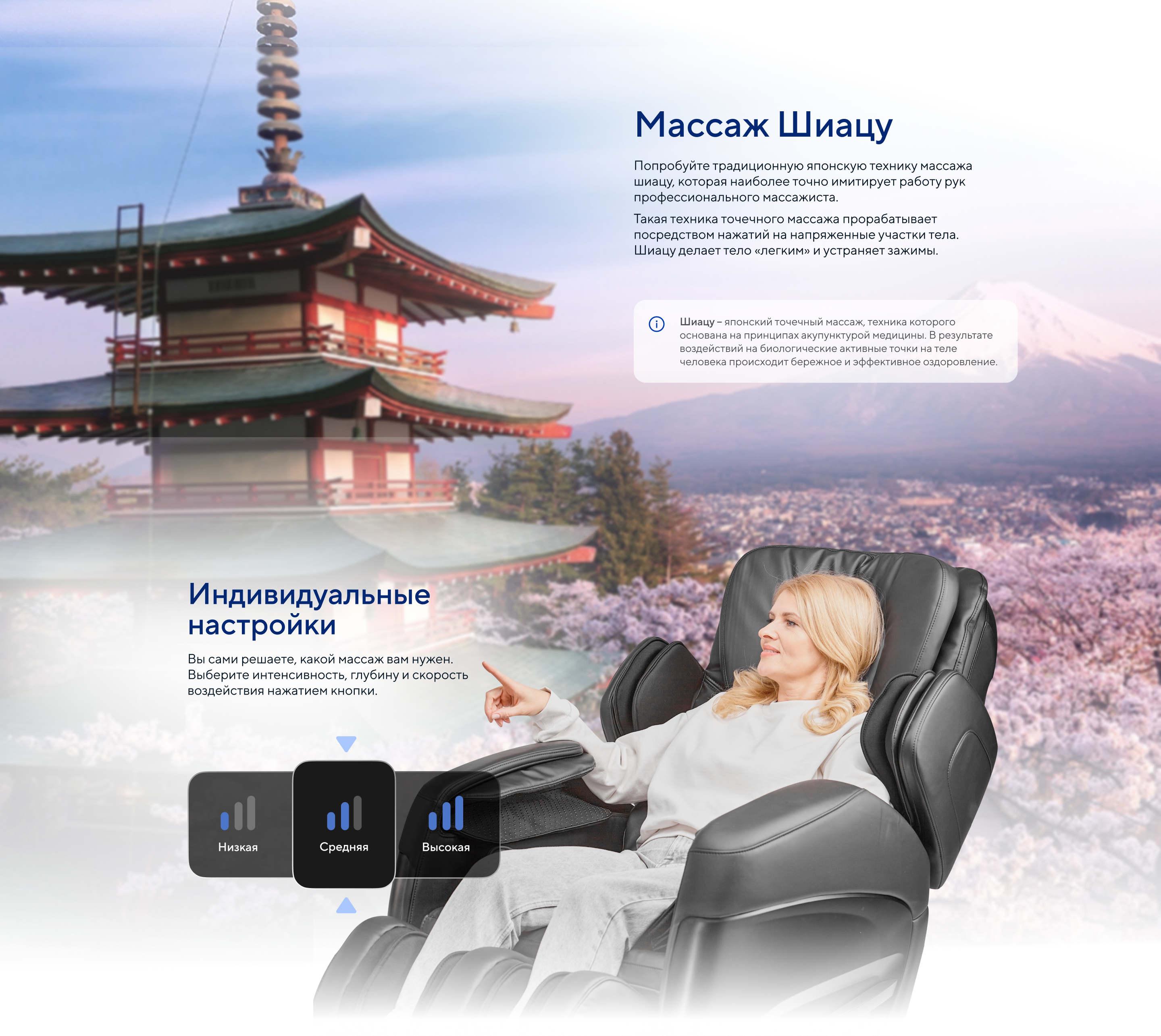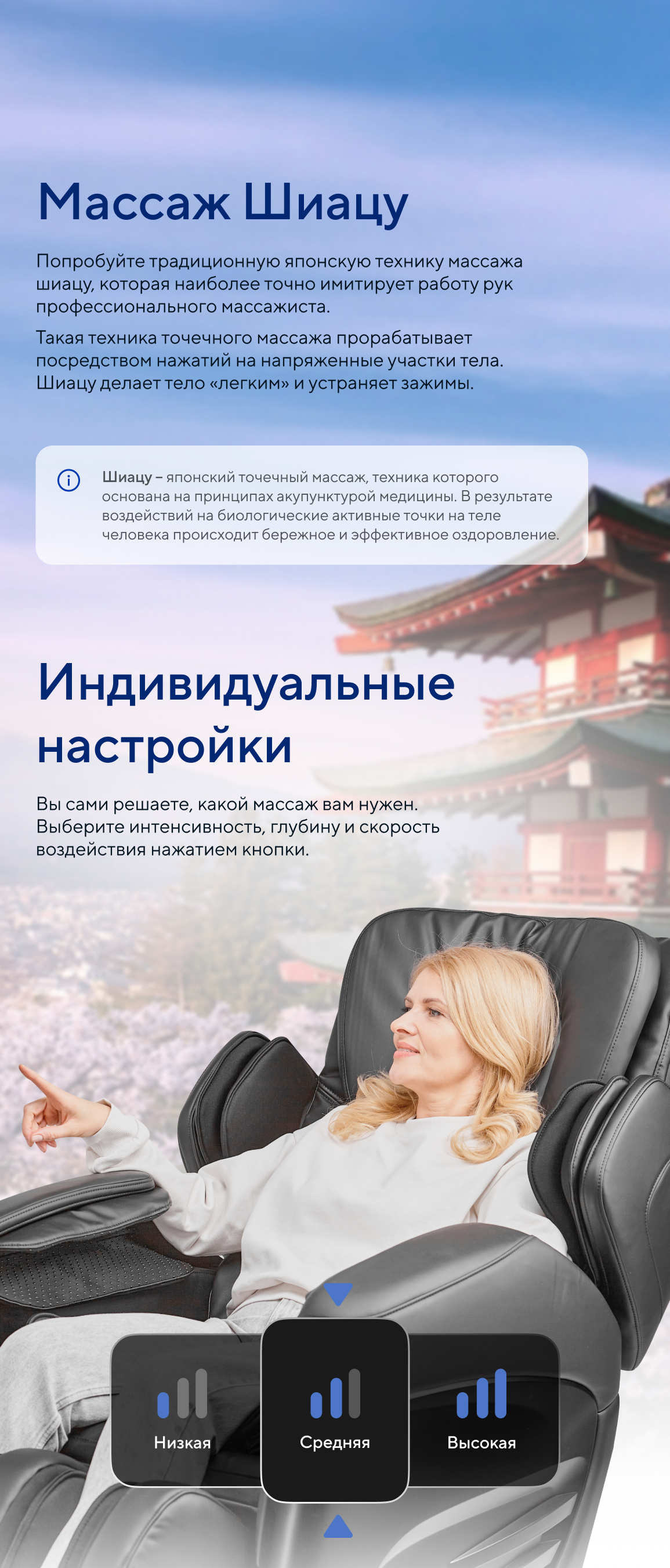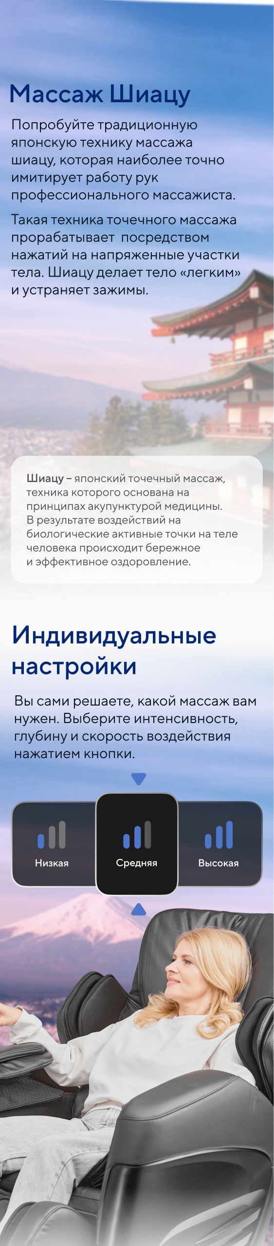 | Ручные программы | Разминание, постукивание, похлопывание, комбо, шиацу |