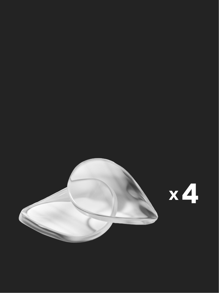 Четыре комплекта гелевых насадок плотно прилегают к коже, гарантируя комфорт и гигиеничность. Замена насадок проста и удобна.